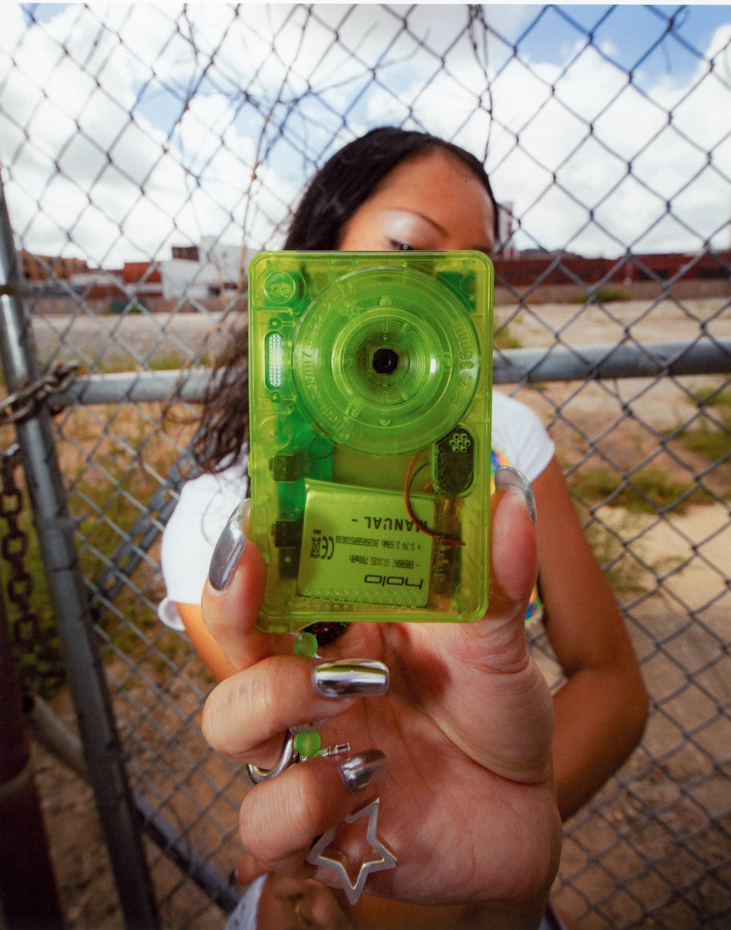 The clear-bodied digital camera is reminiscent of the whimsical technology of the Y2K era.